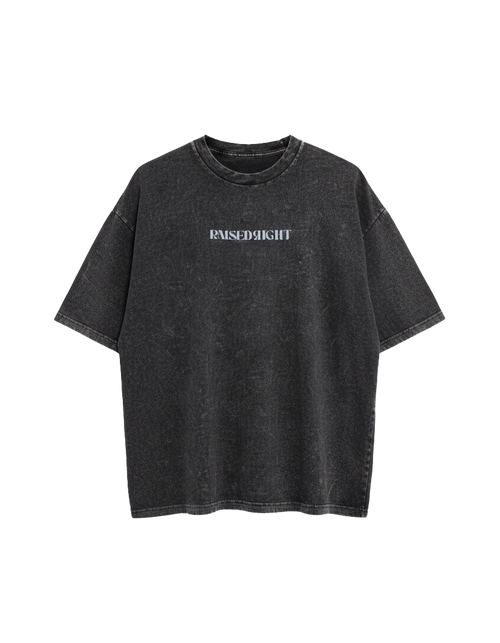 This statement piece features a striking, monochromatic lotus flower design on the back, encapsulating a blend of urban edge and serene beauty. This t-shirt embodies that very message—strength, integrity, and unwavering conviction. The bold "RAISED RIGHT" text adds a touch of rebellion and individuality.